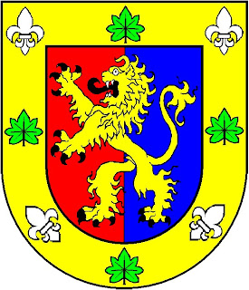 NETO: Partido: I - de vermelho; II - de azul, e sobre-o-todo um leão de ouro; bordadura de ouro, com quatro folhas de figueira de verde alternadas com quatro flores-de-lis cosidas de prata.