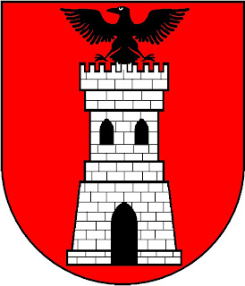 Malafaia: de vermelho, com uma torre de prata aberta e ilumindada de negro, com um corvo estendido de negro sainte das ameias.
